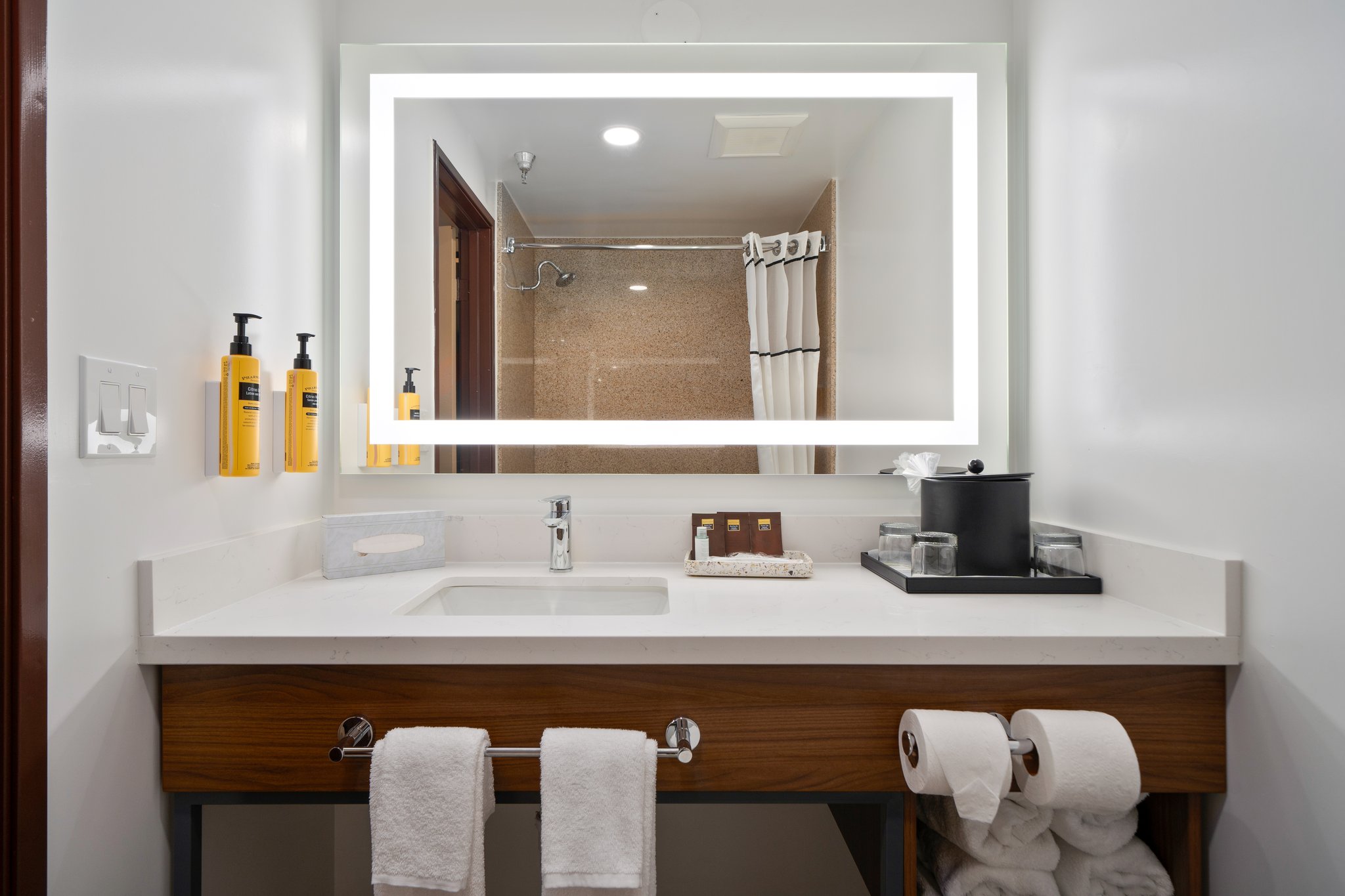 Our Executive Double Queen rooms are designed for business travelers sharing a room or family here for business and leisure. With upgraded amenities and larger TV, our guests can work and relax in our well appointed room.